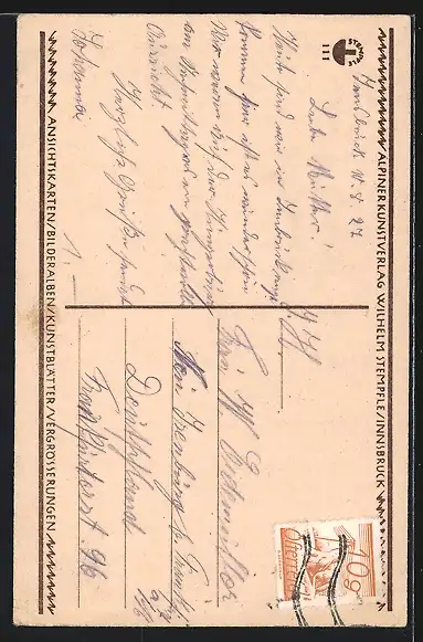 alte Ansichtskarte, gelaufen 1927, Eckknicke re., guter Zustand