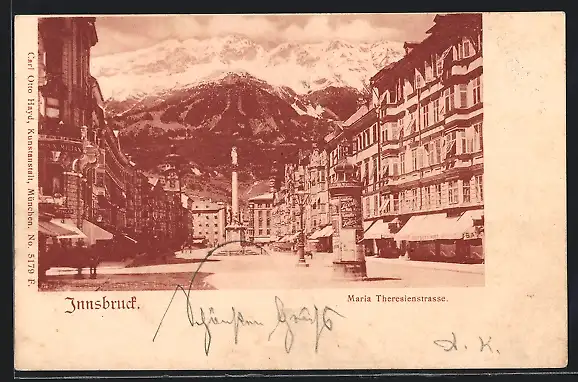 AK Innsbruck, Maria Theresienstrasse mit Denkmal