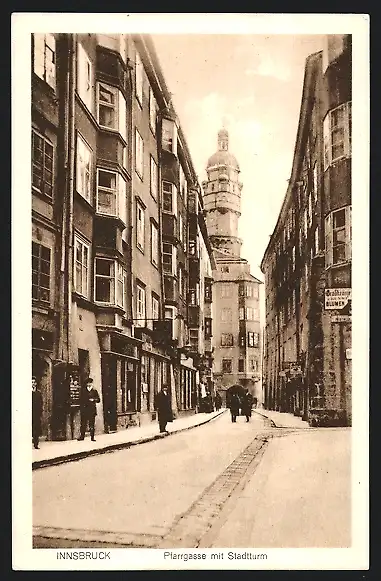 AK Innsbruck, Pfarrgasse mit Stadtturm
