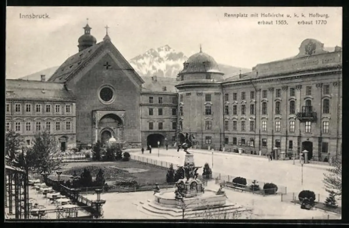 AK Innsbruck, Rennplatz mit Hofkirche und k. k. Hofburg