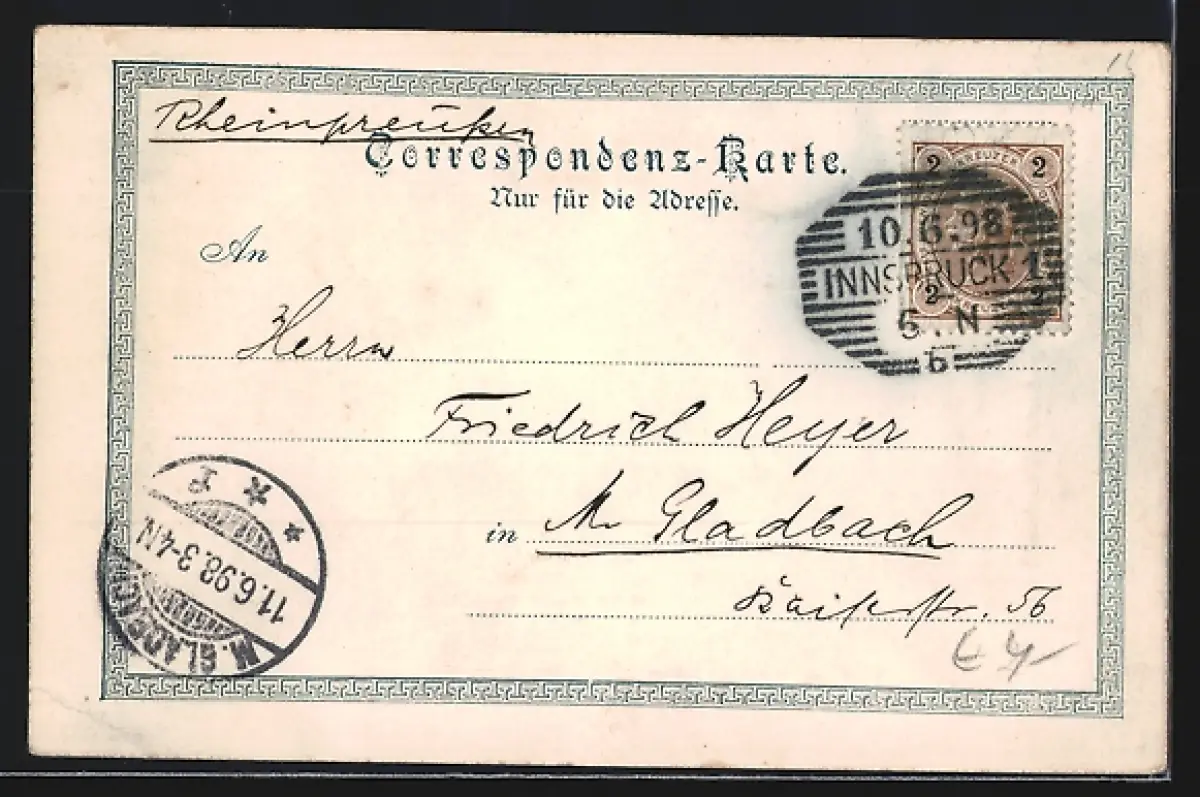 alte Ansichtskarte, gelaufen 1898, guter Zustand