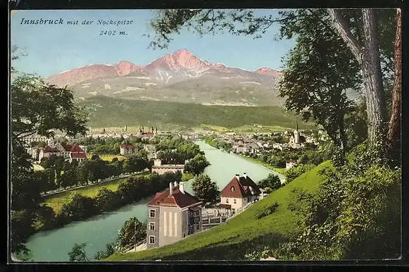 AK Innsbruck, Stadt-Panorama mit der Nockspitze