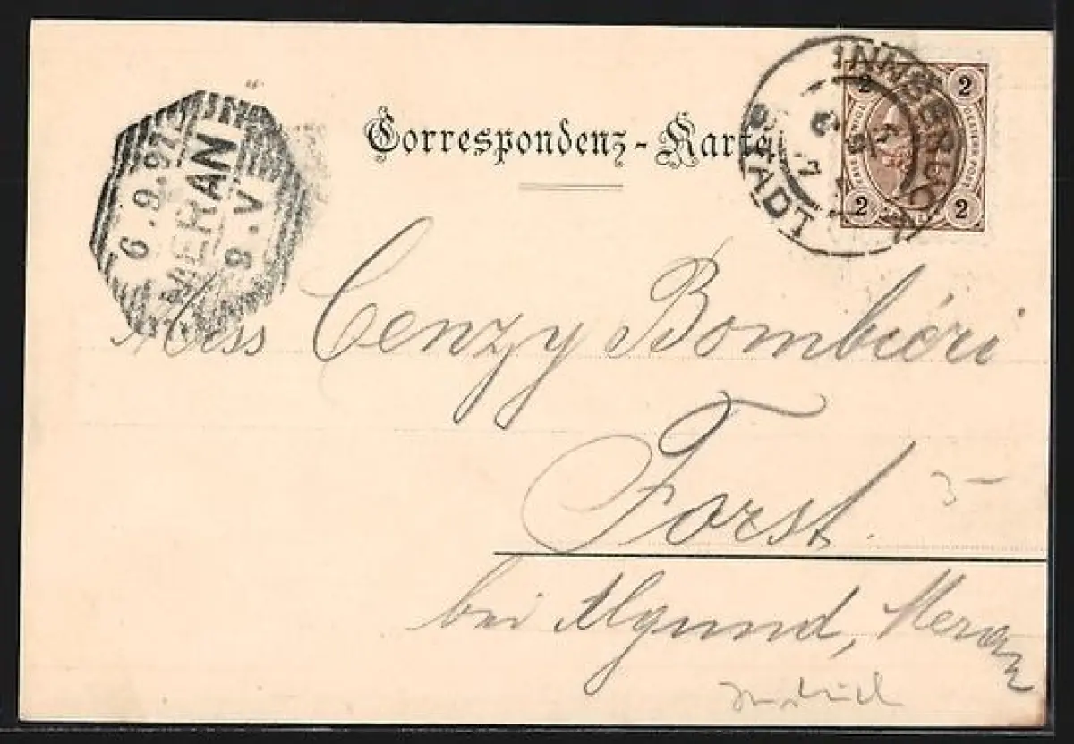 alte Ansichtskarte, gelaufen 1897, Stempelspur, guter Zustand
