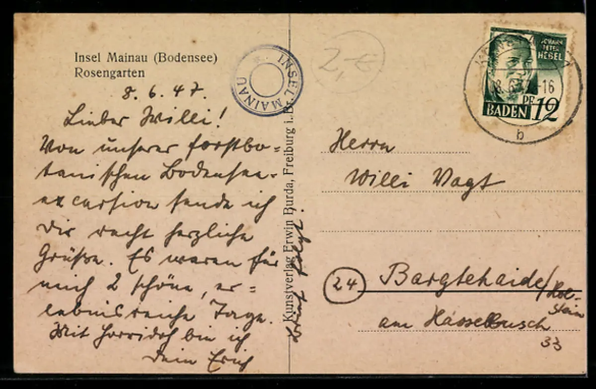 alte Ansichtskarte, gelaufen 1947, guter Zustand