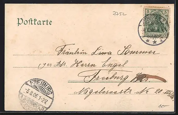 alte Ansichtskarte, gelaufen 1906, Eckknick oben re., guter Zustand