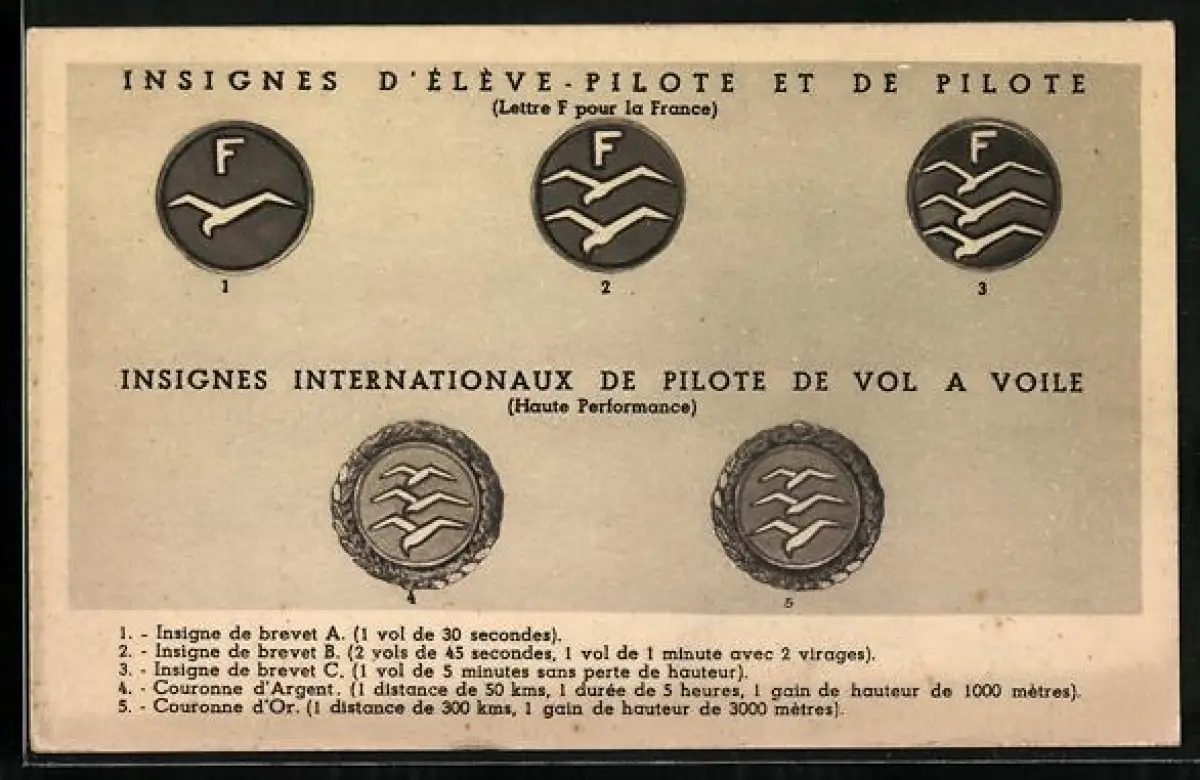 AK Insignes Internationaux de Pilote de Vol a Voile, Abzeichen, Segelflugzeug