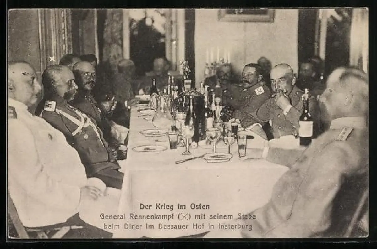 AK Insterburg, Der Krieg im Osten, General Rennenkampf mit seinem Stabe beim Diner im Gasthaus Dessauer Hof