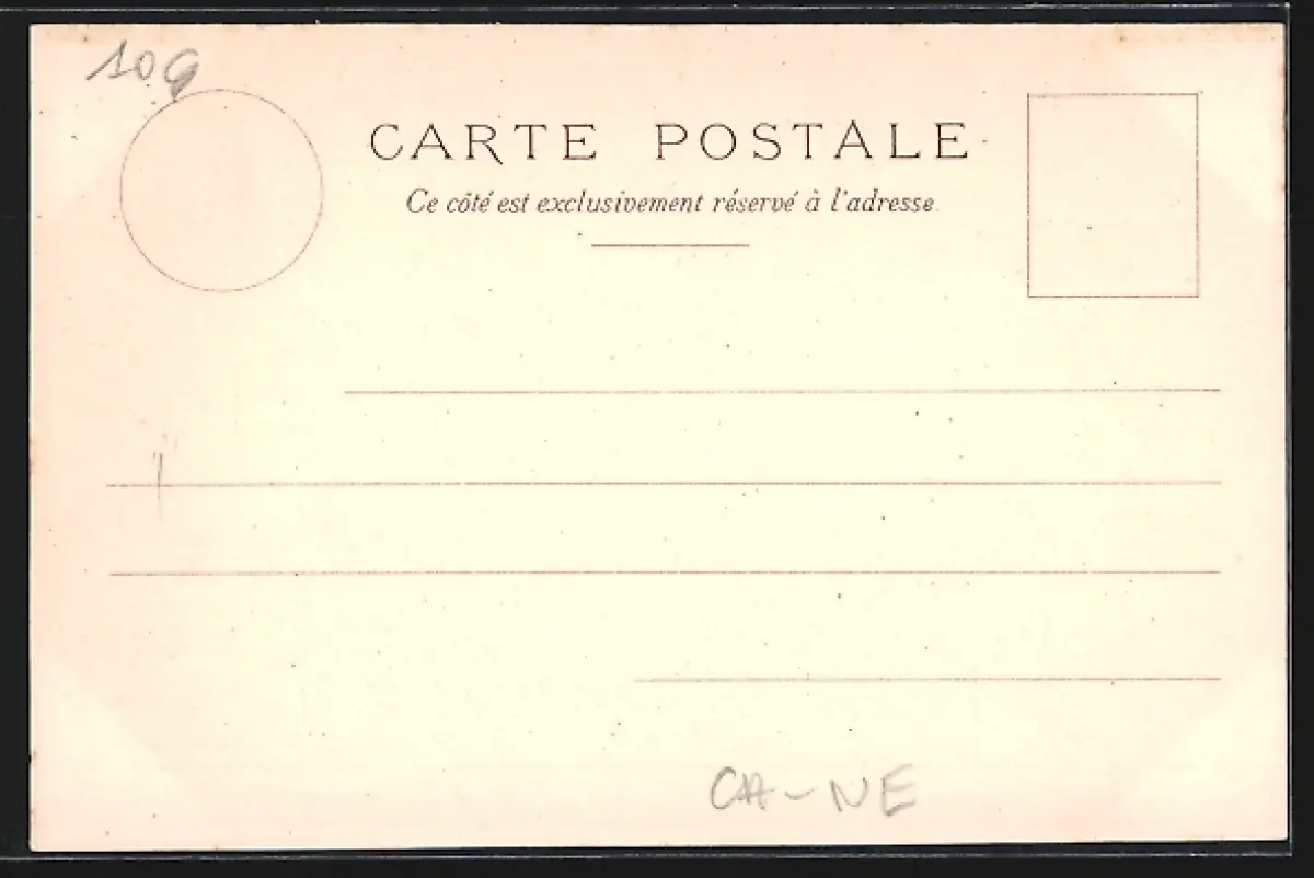 Personenbezogene Daten auf der Rückseite der Karte wurden durch blauen Textmarker unkenntlich gemacht. Die blauen Stellen sind auf die Vorderseite durchgeweicht und wirken sich negativ auf das Postkartenfoto aus