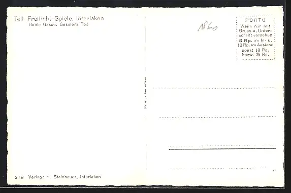 AK Interlaken, Tell-Freilicht-Spiele, Hohle Gasse, Gesslers Tod