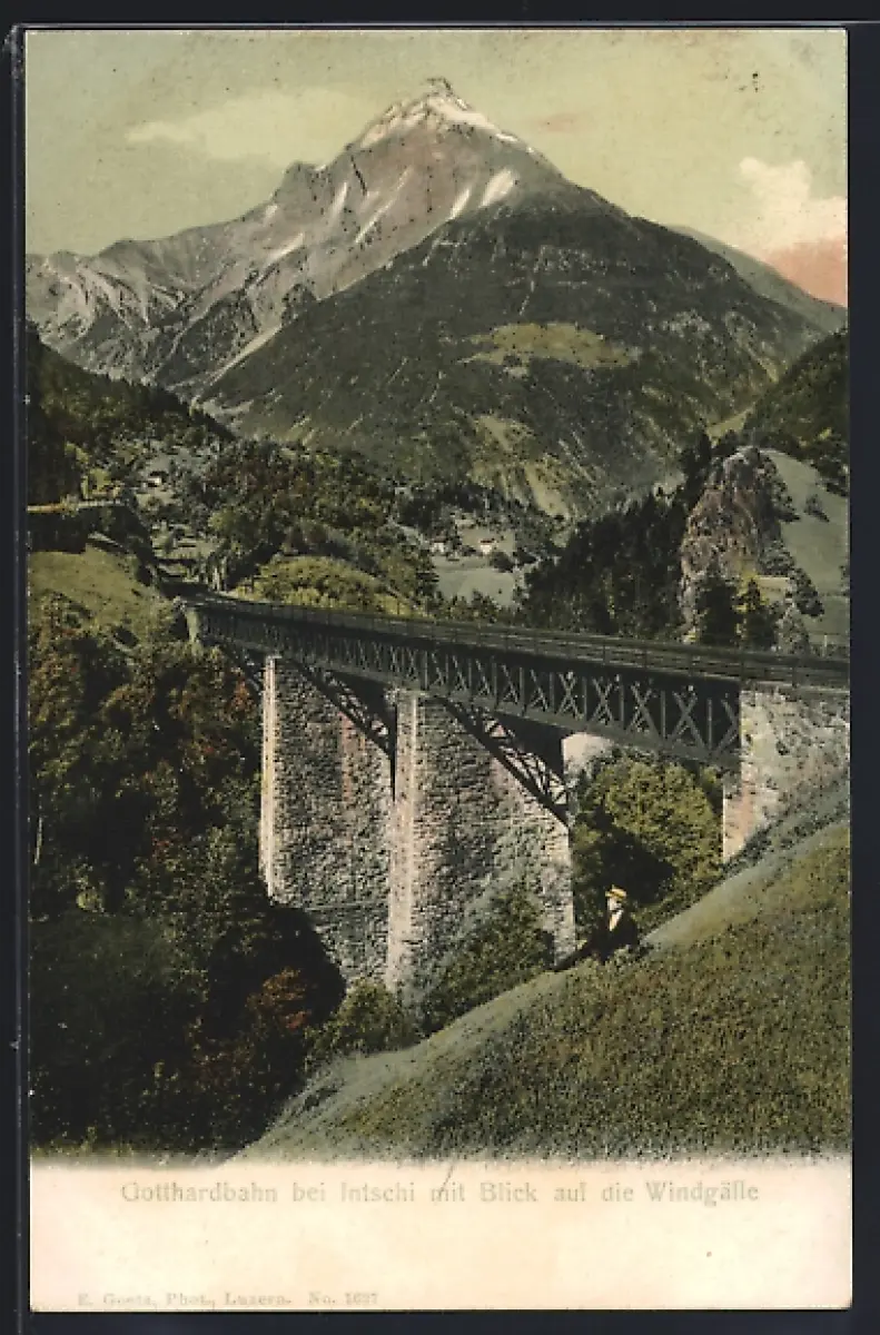 AK Intschi, Gotthardbahn mit Blick auf die Windgälle