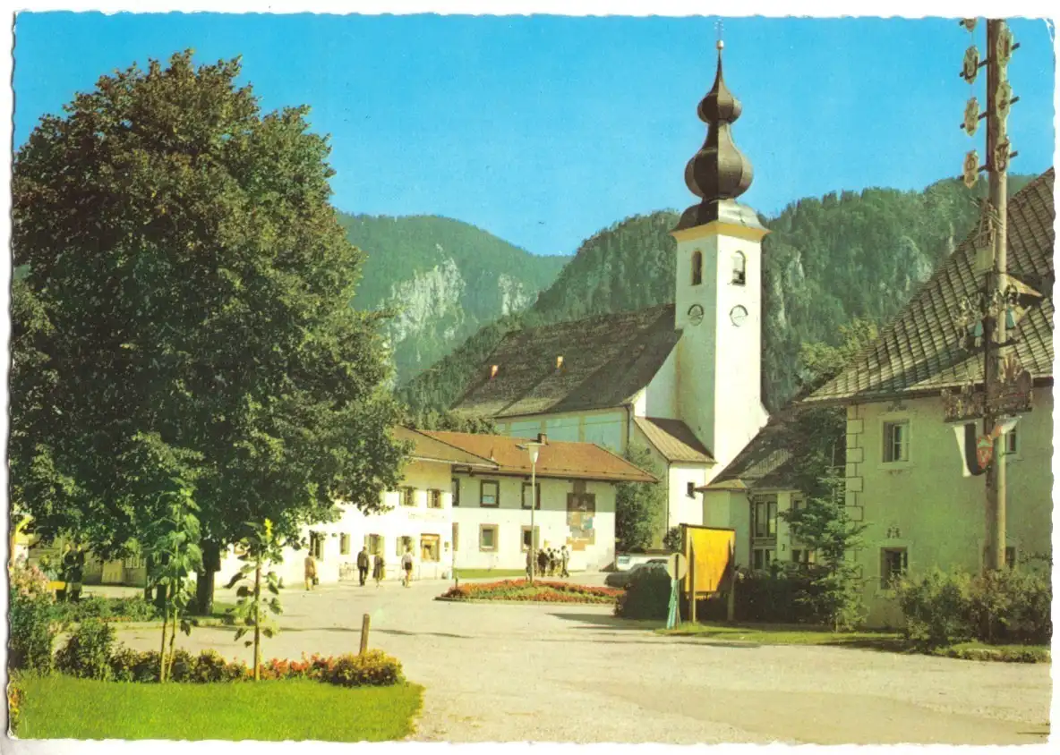 Ansichtskarte Inzell Obb. Am Dorfplatz mit Kirche Erhaltung I-II postalisch gelaufen, gestempelt: Inzell, 26.7.76 Verlag: T. Sellhuber, 8221 Inzell