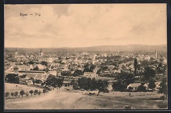 AK Irig, Ortsansicht mit Kirche aus der Vogelschau