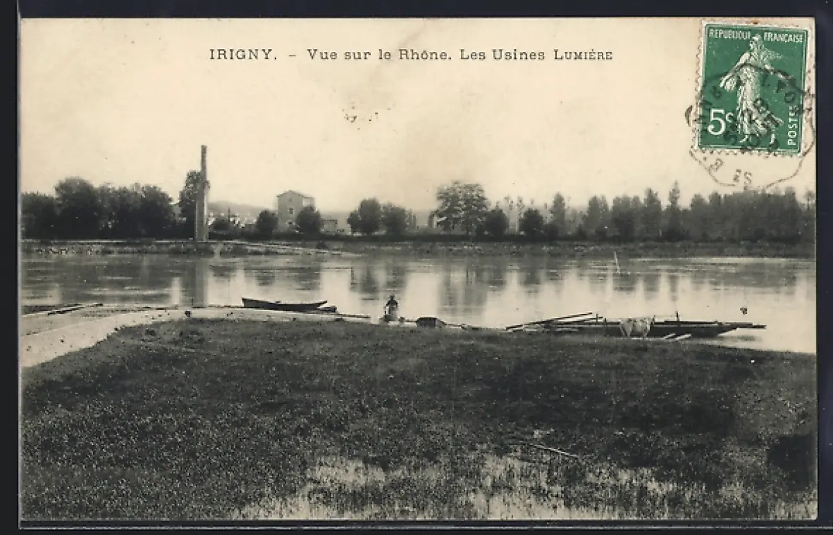 AK Irigny, Vue sur le Rhône. Les Usines Lumière