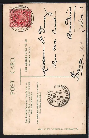 alte Ansichtskarte, gelaufen 1905, Eckknicke li. unten und re. oben, Bugspur re. unten, guter Zustand