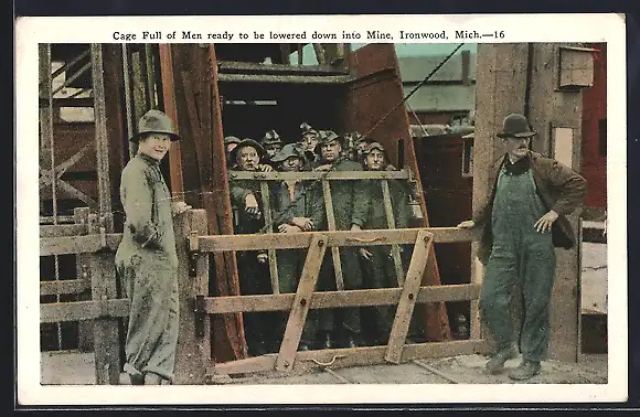 AK Ironwood, MI, Cage Full of Men ready to be lowered down into Mine