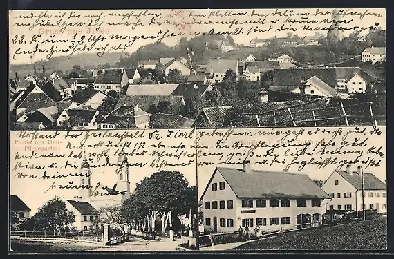 AK Irsee, Ortspartie mit Heil- u. Pflegeanstalt, Handlung X. Kohlund, Totalansicht aus der Vogelschau