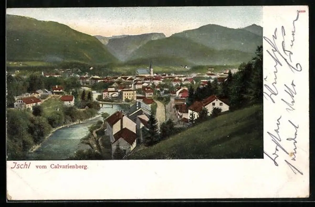 AK Ischl, Panorama vom Calvarienberg