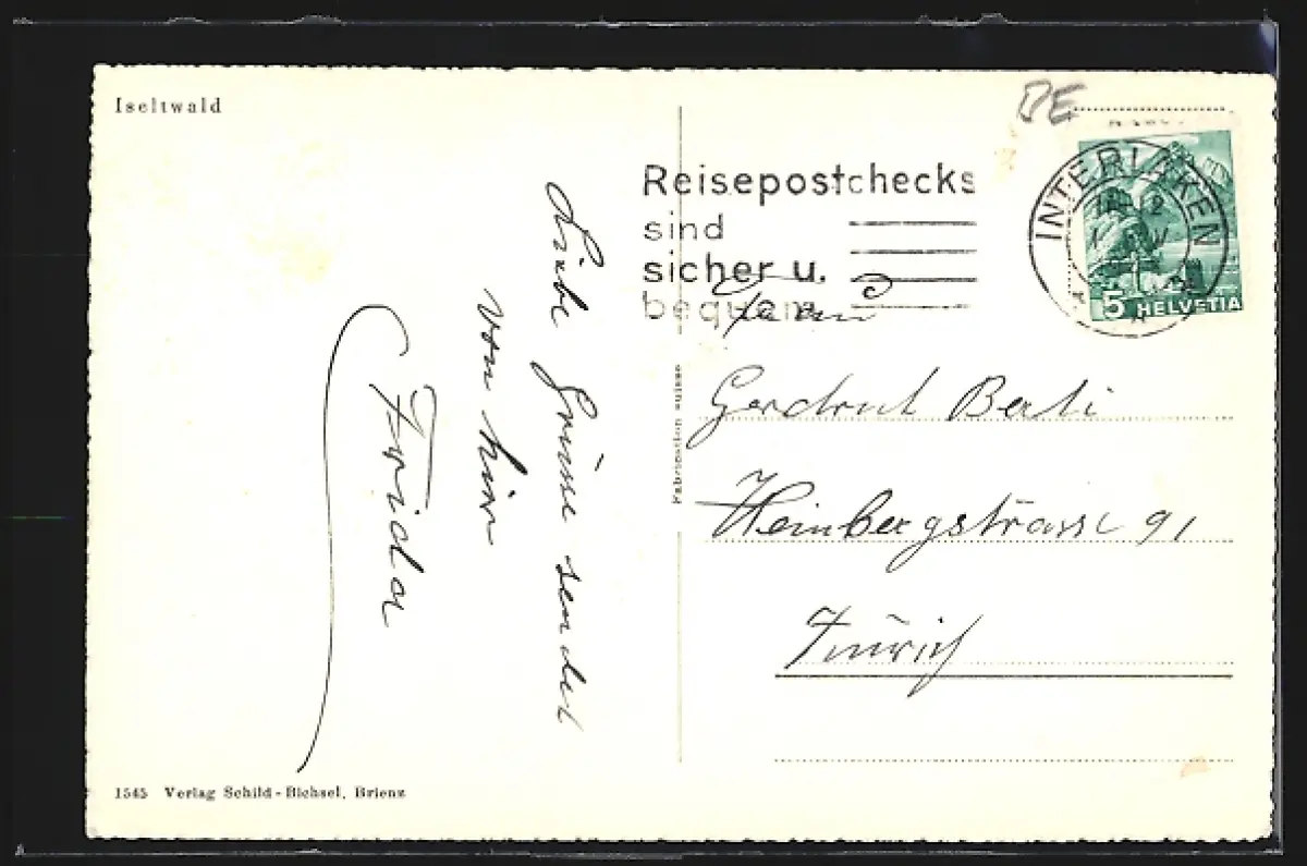 AK Iseltwald, Ortsansicht und Seepartie aus der Vogelschau