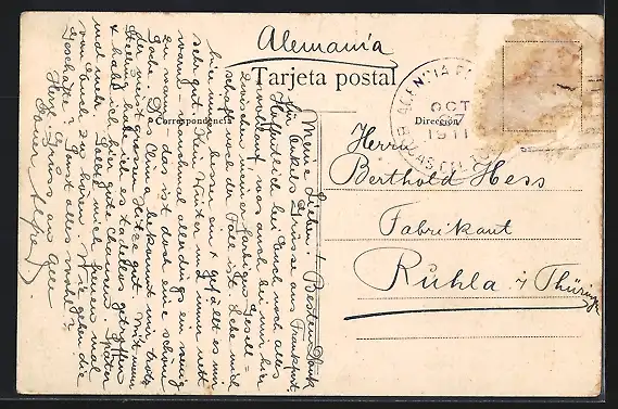 alte Ansichtskarte, gelaufen 1911, Eckknick li. oben, Briefmarke entfernt, rückseitig Oberflächenschaden, guter Zustand