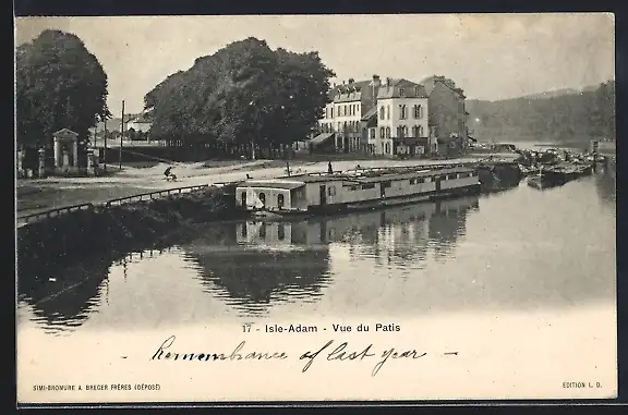 AK Isle-Adam, Vue du Patis avec péniche sur la rivière