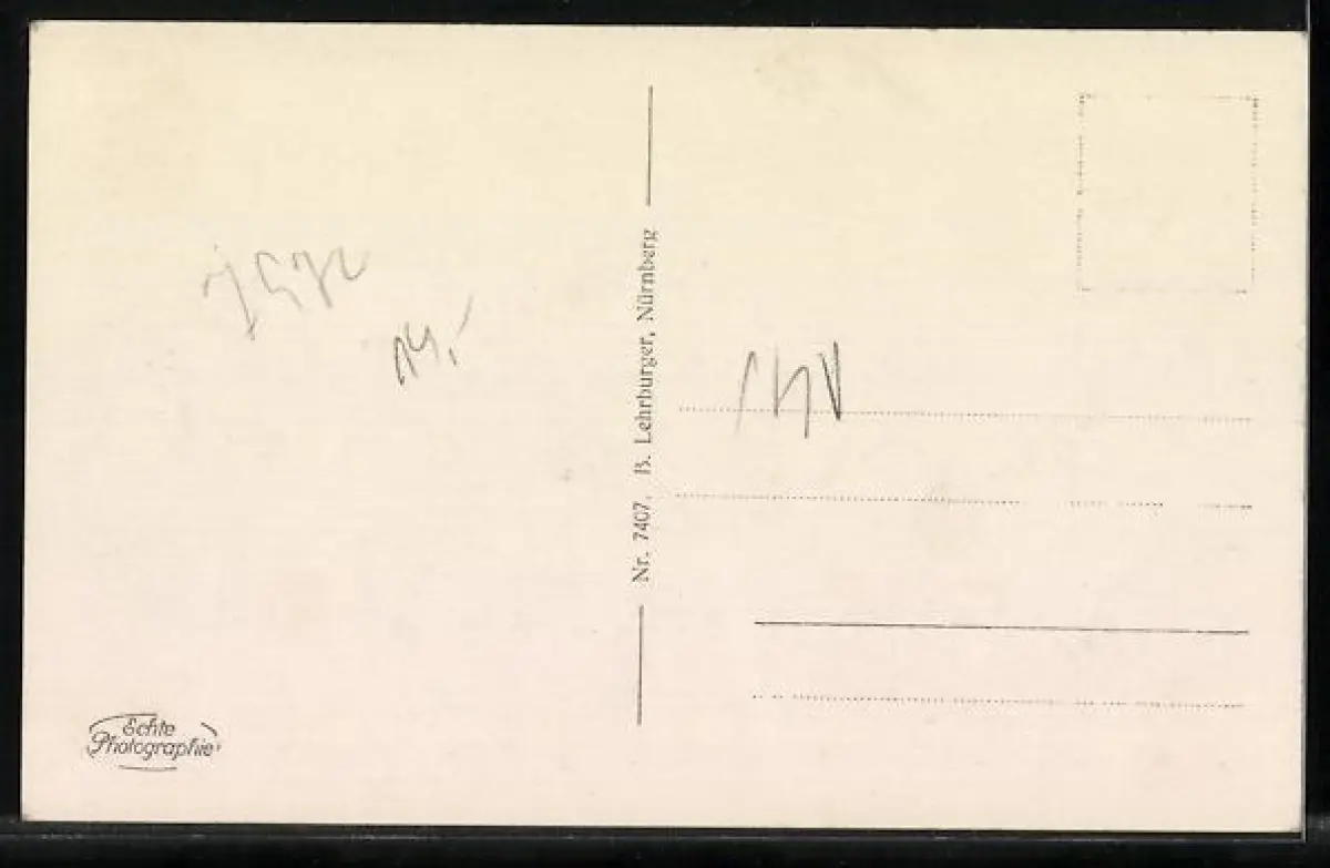 Personenbezogene Daten auf der Rückseite der Karte wurden durch blauen Textmarker unkenntlich gemacht. Die blauen Stellen sind auf die Vorderseite durchgeweicht und wirken sich negativ auf das Postkartenfoto aus