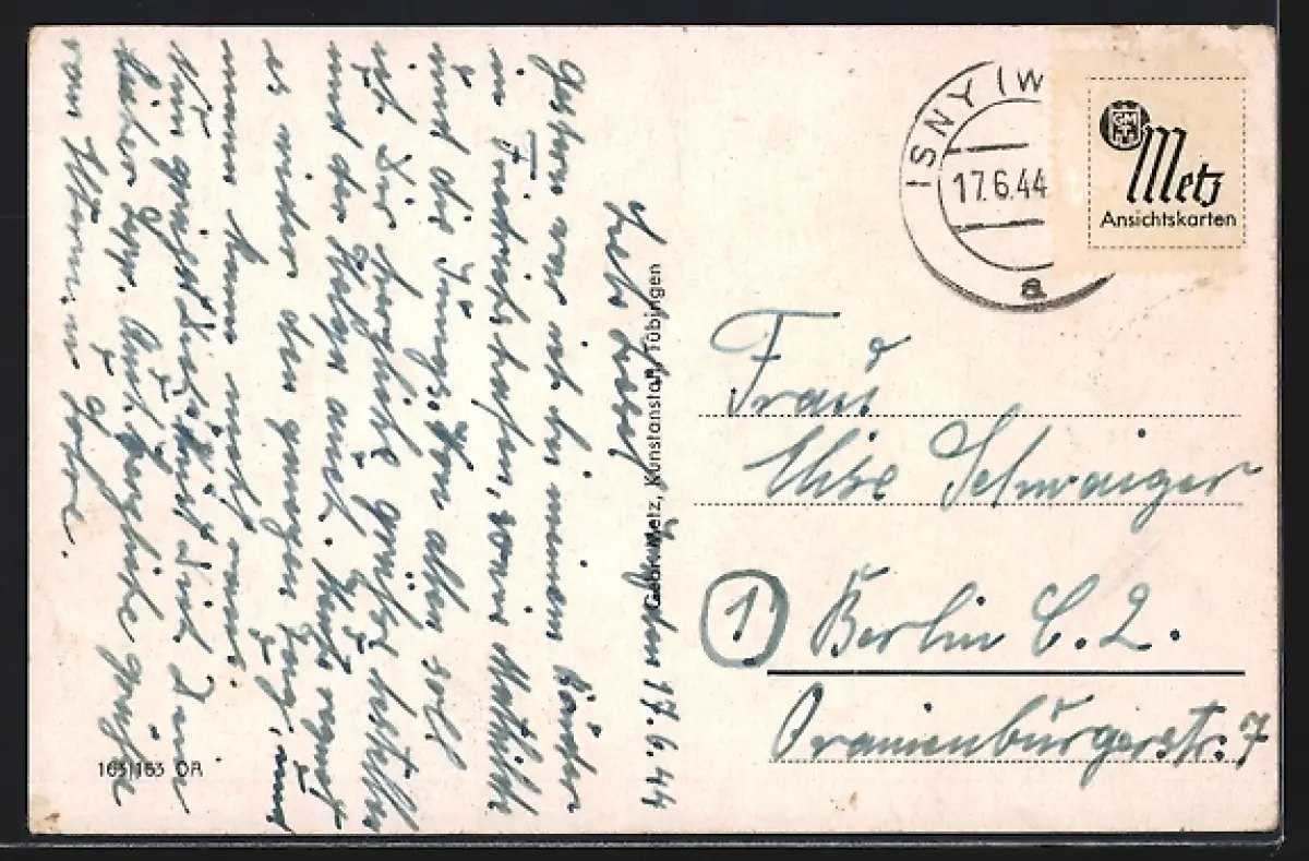 alte Ansichtskarte, gelaufen 1944, Briefmarke entfernt, guter Zustand