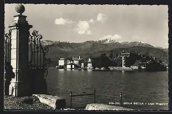 AK Isola Bella /Lago Maggiore, Ortsansicht mit Gebirgspanorama