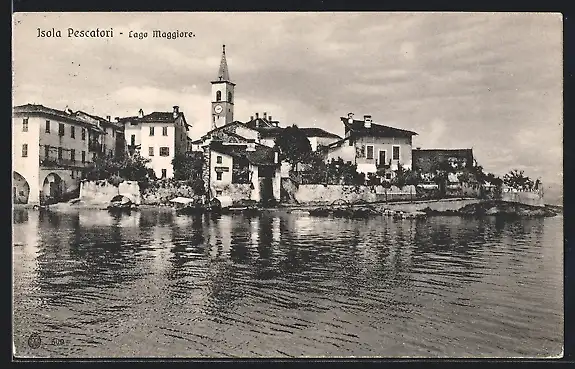 AK Isola Pescatori, Lago Maggiore, Ortsansicht mit Uhrturm