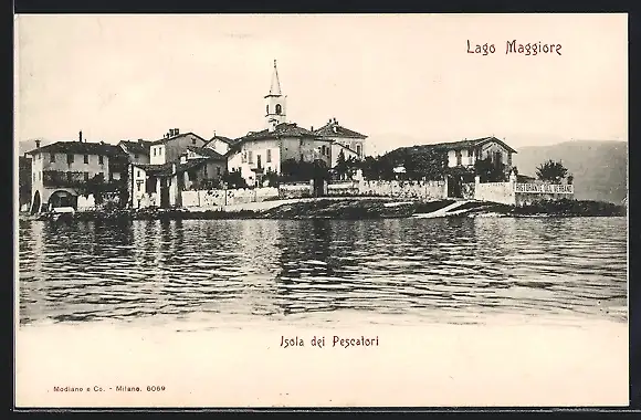 AK Isola dei Pescatori, Lago Maggiore, Bootspartie mit Blick zur Kirche