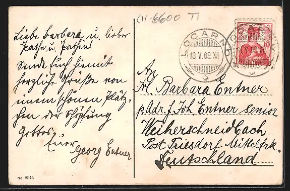 alte Ansichtskarte, gelaufen 1909, guter Zustand