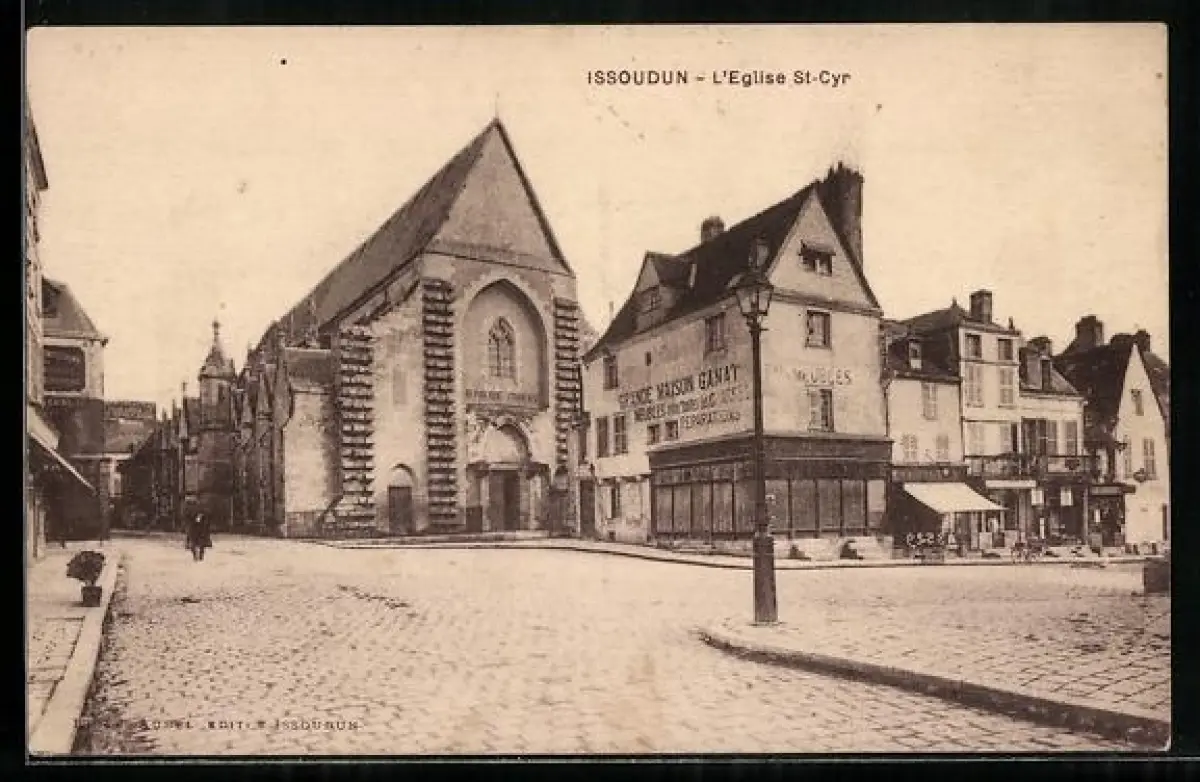 AK Issoudun, L`Église St-Cyr et la place animée adjacente