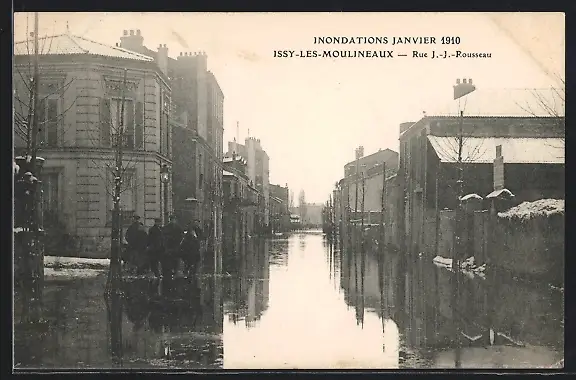 AK Issy-les-Moulineaux, Inondations Janvier 1910, Rue J.-J.-Rousseau