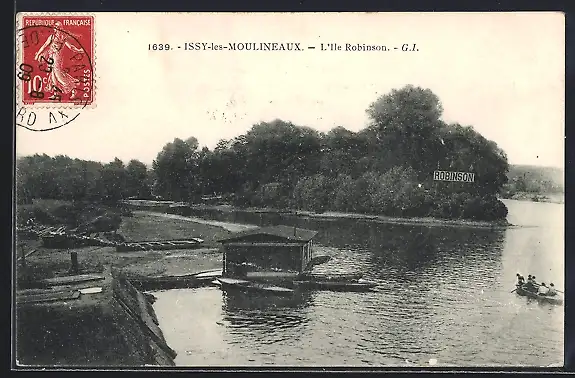 AK Issy-les-Moulineaux, L`Île Robinson avec barques sur la rivière