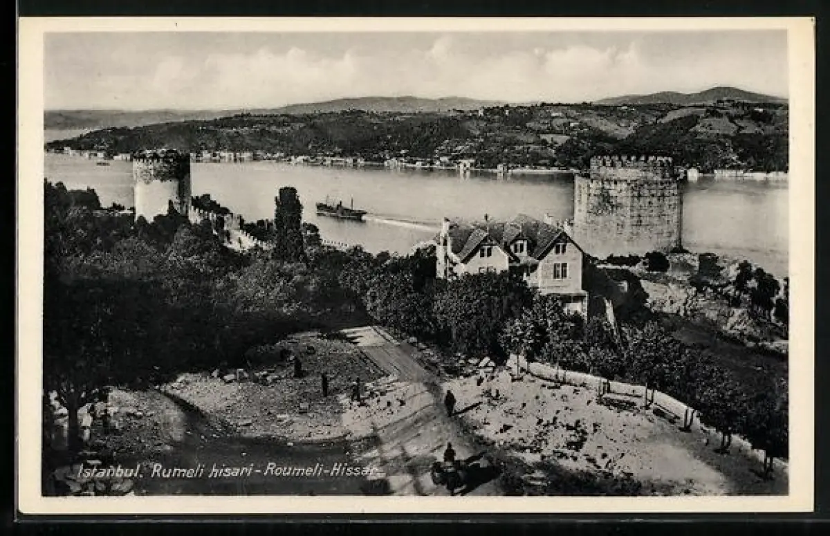 AK Istanbul, Roumeli-Hissar aus der Vogelschau