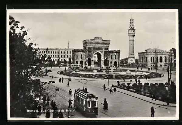 AK Istanbul, Vue Gènèrale de Bayazid, Strassenbahn