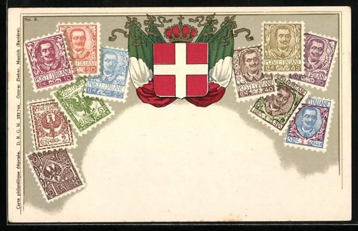 AK Italien, Briefmarken mit Wappen