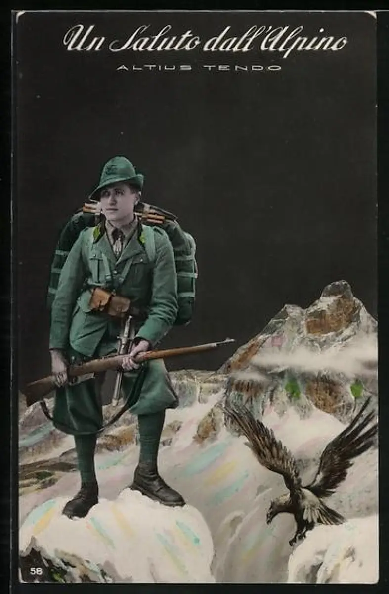 AK Italienischer Soldat in Uniform mit Waffe, Un Saluto dall Alpino
