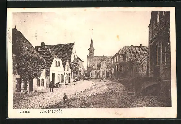 AK Itzehoe, Jürgenstrasse mit Kirche