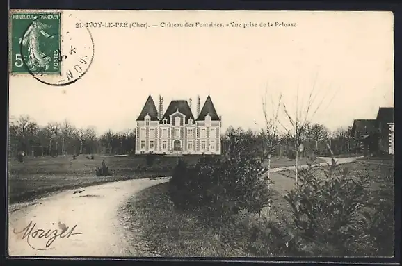 AK Ivoy-le-Pré, Château des Fontaines, Vue prise de la Pelouse