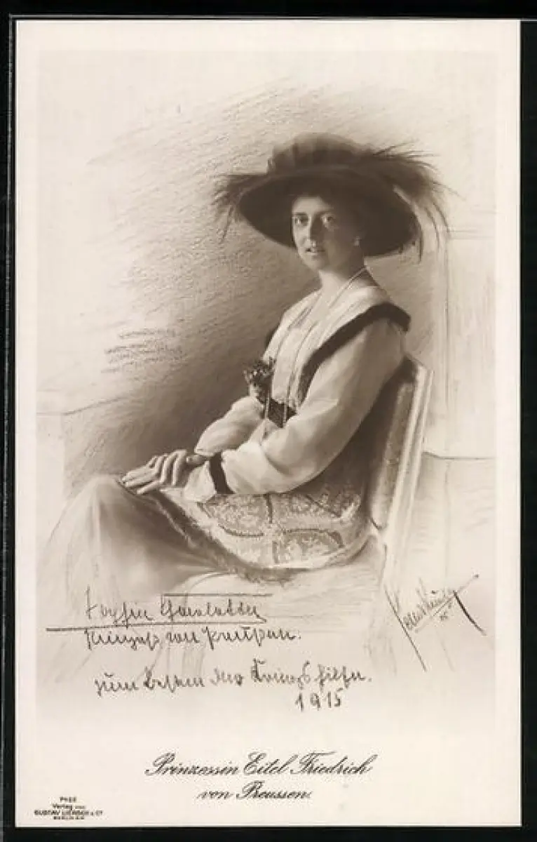 AK J.K.H. der Frau Prinzessin Eitel Friedrich von Preussen, auf einem Stuhl sitzend mit Hut