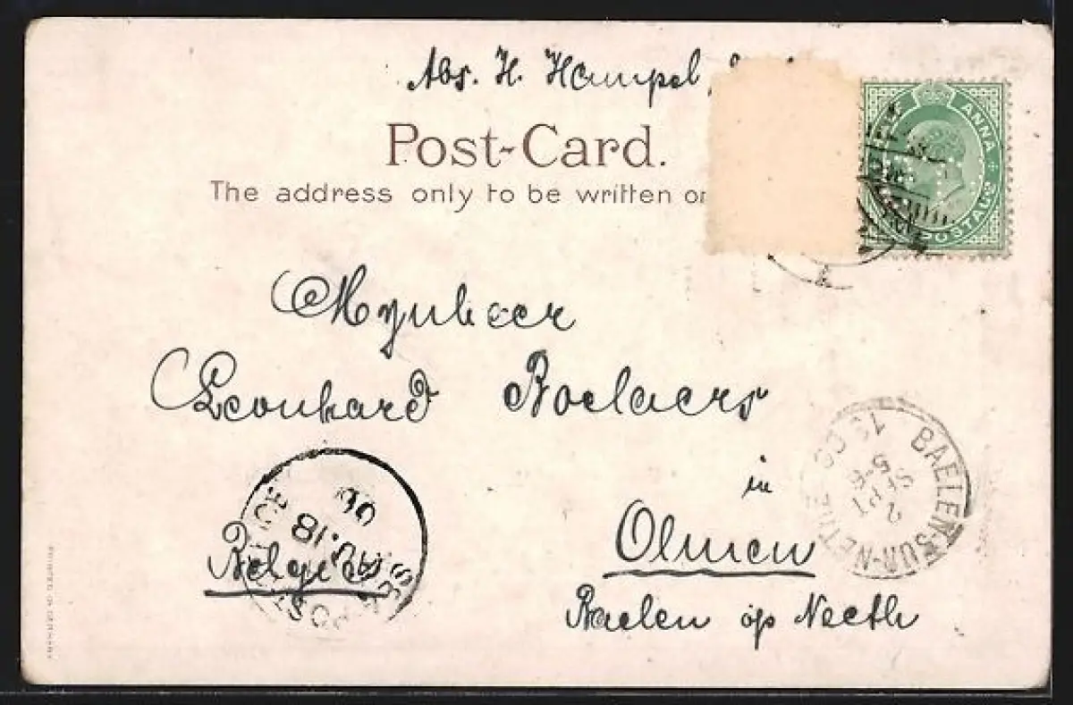 alte Ansichtskarte, gelaufen, Briefmarke entfernt, rückseitig Oberflächenschaden, Eckknick oben li., guter Zustand