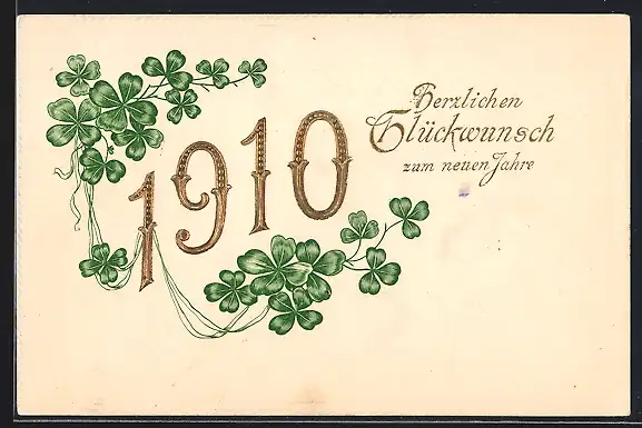 AK Jahreszahl 1910 gerahmt von Kleeblättern, Neujahrsgruss