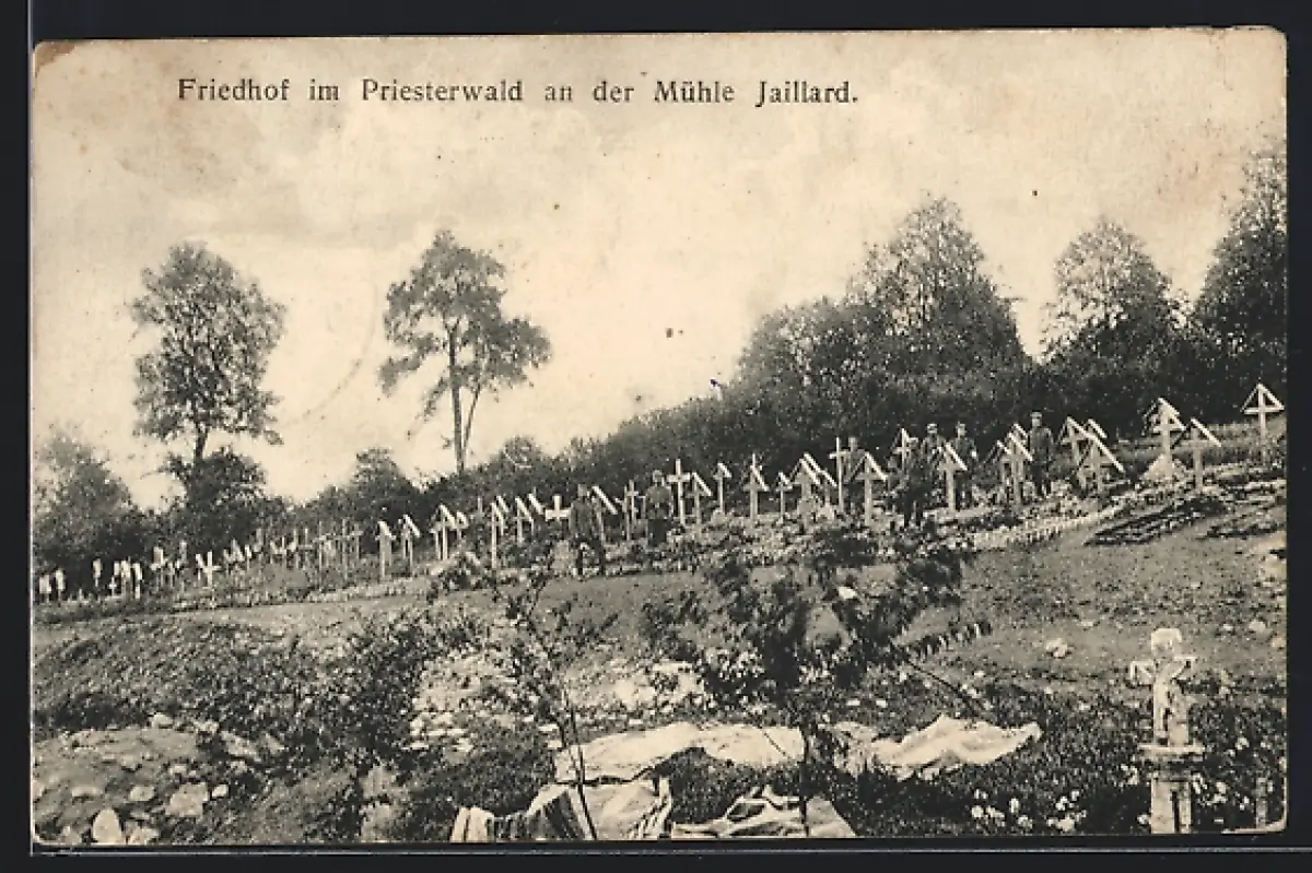AK Jaillard, Friedhof im Priesterwald an der Mühle