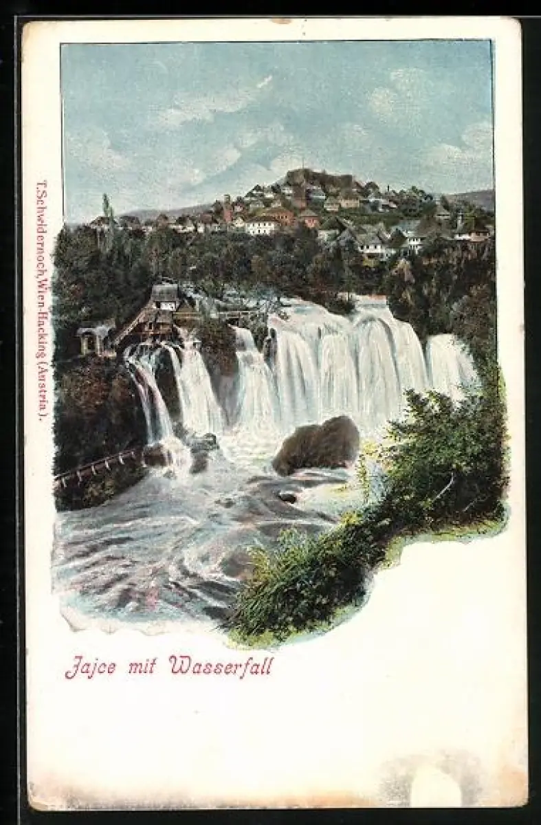AK Jajce, Panorama mit Wasserfall