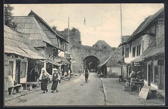 AK Jajce, Strassenpartie mit Frauen in Trachten