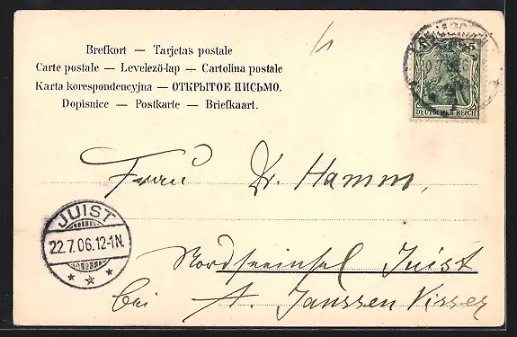 alte Ansichtskarte, gelaufen 1906, Eckknick re. oben, guter Zustand
