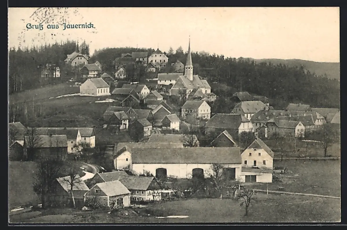 AK Jauernick / Deutsch Ossig, Gesamtansicht mit Kirche