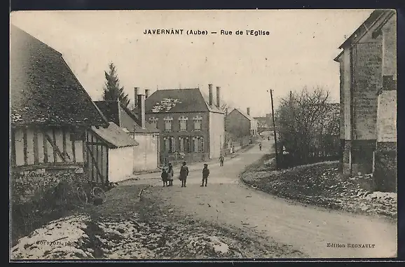 AK Javernant, Rue de l`Église avec des passants dans la rue