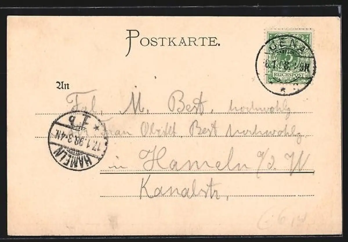 alte Ansichtskarte, gelaufen 1898, guter Zustand