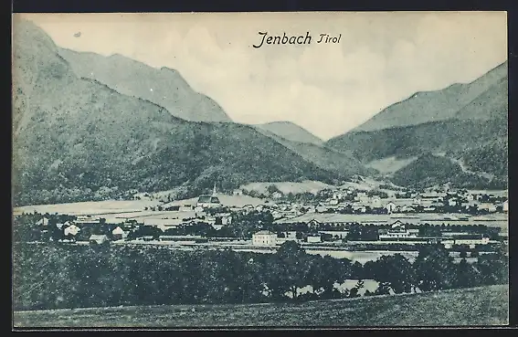 AK Jenbach /Tirol, Teilansicht mit Bergen